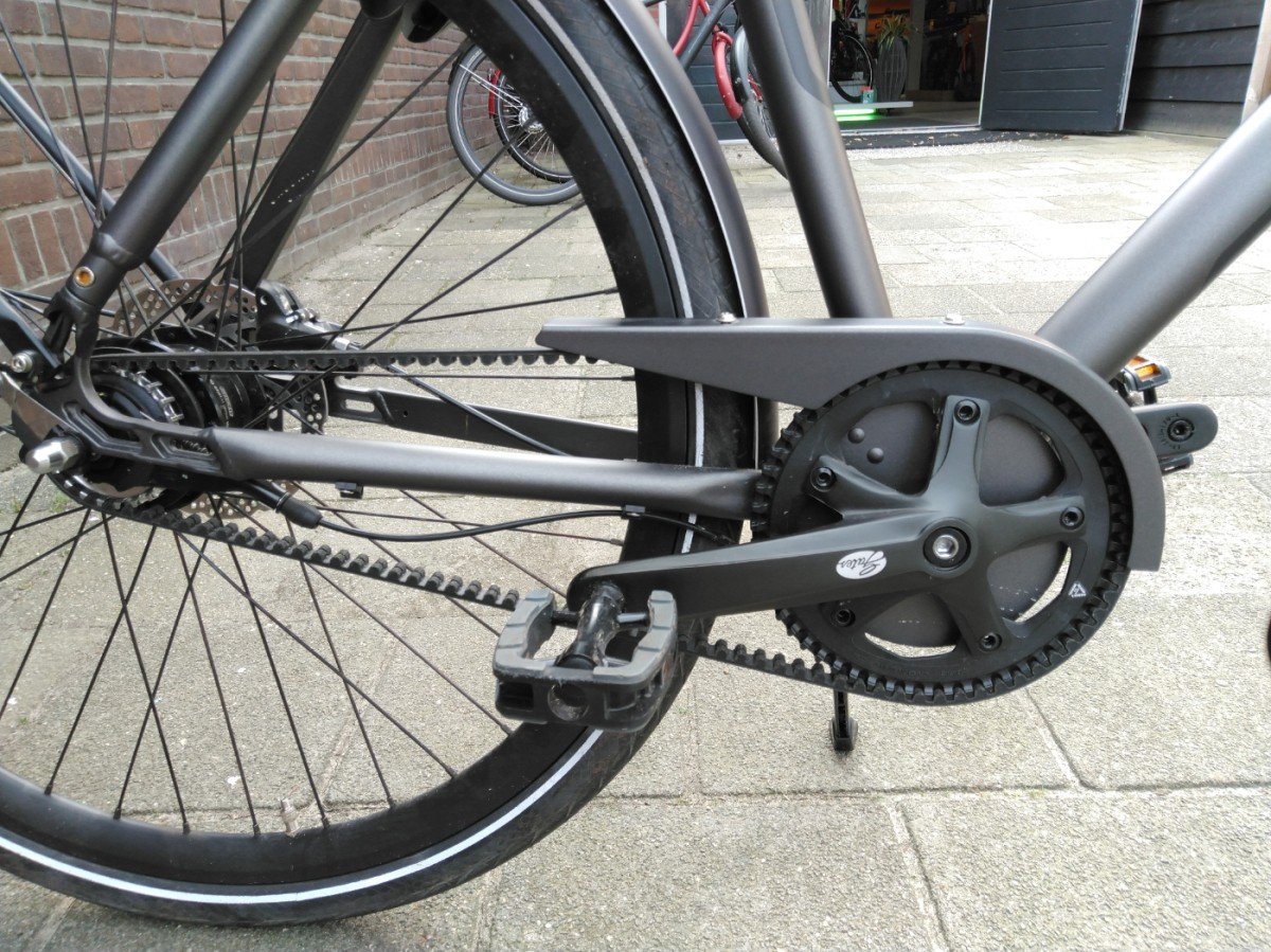 Voorzien van een riemaandrijving (belt drive) en 11 versnellingen, wat zorgt voor soepel schakelen en weinig onderhoud. Comfortabele en sportieve fiets, geschikt voor zowel dagelijks gebruik als langere ritten.