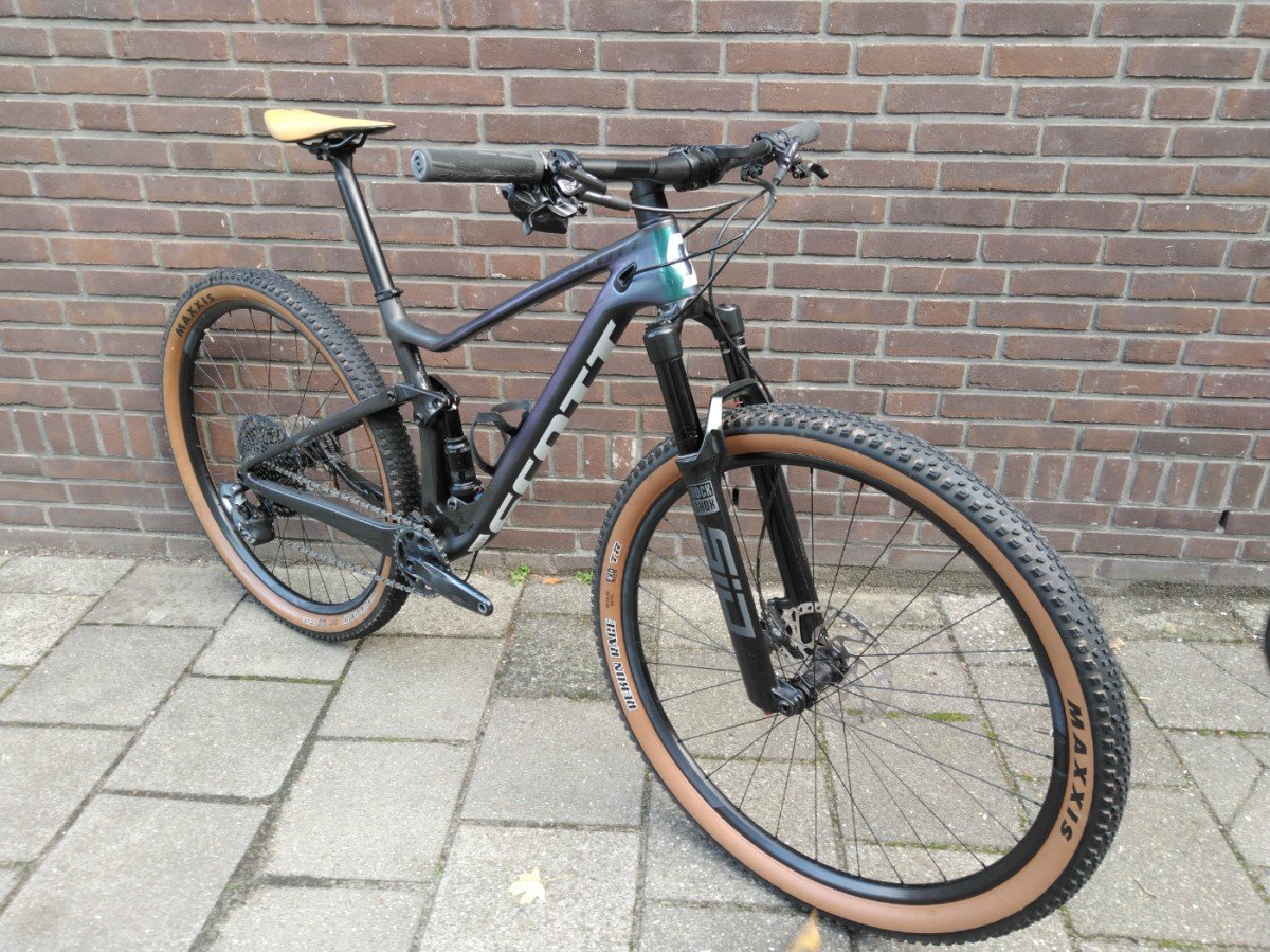 Zeer nette carbon Scott spark fully, deze fiets is weinig gebruikt en daardoor optisch en technisch in zeer goede staat. De fiets is uitgevoerd met Sram Axs elektrisch schakelen, Shimano xt remmen en een SID verende vork.